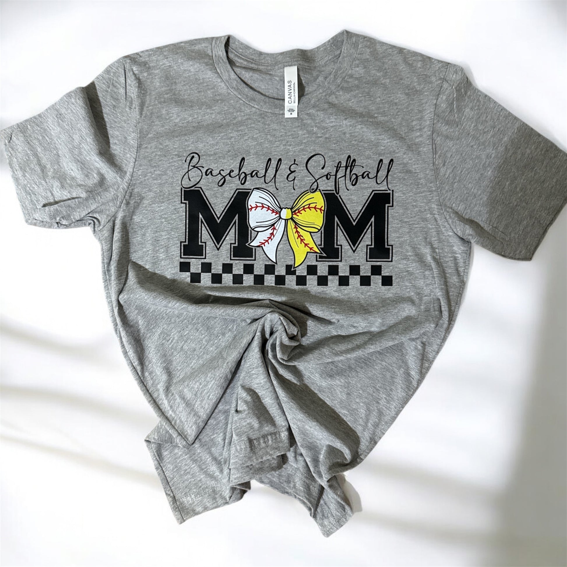 The ultimate design for the mom who does it all! Whether you’re running between fields or cheering from the bleachers, our Baseball & Softball Bow design is made for you. Featuring bold varsity "MOM" lettering, a trendy checkerboard accent, and a unique split baseball/softball bow, this piece is perfect for long tournament weekends and showing off your dual-sport pride.