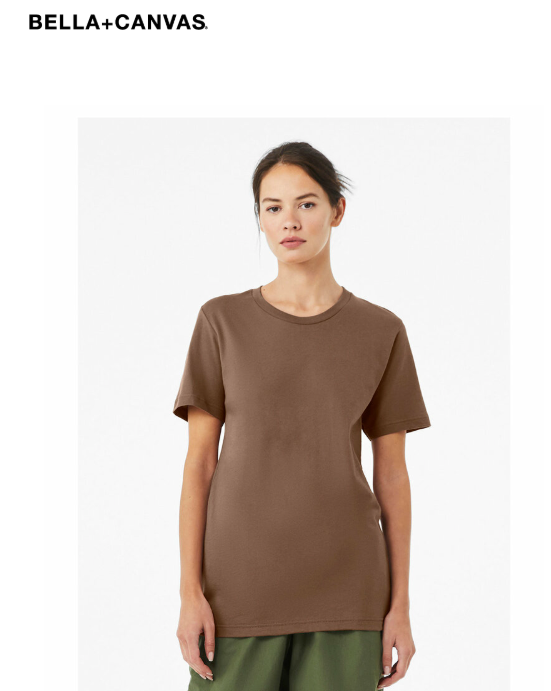 The T-Shirt (Bella+Canvas 3001CVC): It features a modern, retail fit and a high-quality cotton-poly blend that creates a beautiful textured look and an ultra-soft feel.